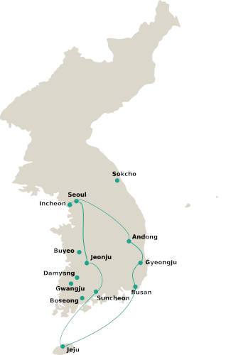 Départ en fin de matinée en avion pour rejoindre l'aeroport de Yeosu puis rencontre avec votre chauffeur qui vous conduira à Suncheon, capitale écologique du pays.